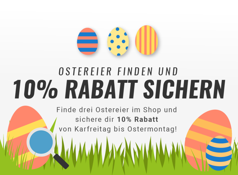 Dann ist das jetzt genau dein Moment! Besuche unseren Fanshop (powered by Fan12) und finde auf der Startseite drei versteckte Ostereier, um auf dir auf deine nächste Bestellung 10% Rabatt zu sichern! Du erhältst nach der erfolgreichen Suche einen Code, den du im letzten Schritt deines Kaufs einlösen kannst.